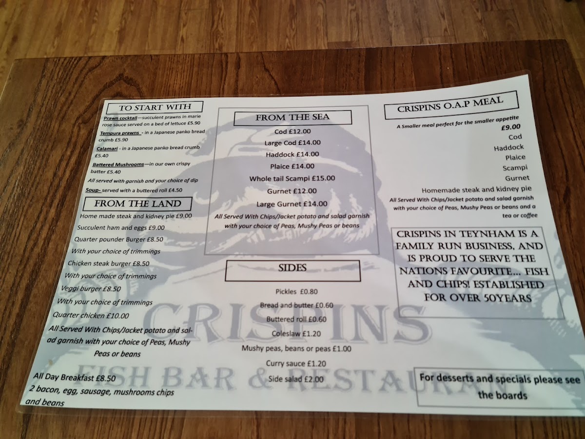 Welcome to Crispin's Fish Bar, a gem nestled on London Road in Teynham, Sittingbourne. This charming spot is known for its irresistibly fresh fish and chips, a staple of British cuisine that truly shines here. The moment you step in, you're greeted by friendly staff and a cozy atmosphere adorned with nostalgic décor.